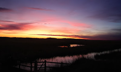 I walked along The East Bank with Pete. There were huge sections of reedbed plonked on the path!!! It was as though a giant had scooped out a massive section of reed bed, roots and mud and then placed it neatly on the top of the path! It was unbelievable to see this. There were several of these massive clumps of reeds in several places along the path and it was a job to get round some of them. I just can't imagine the ferocity of the sea to have done this! If this storm had occurred in daylight, it would have been beyond spectacular to witness. We saw at least 4 Bearded Tits in the remaining reed beds. It was a spectacular sunset with swathes of red streaks filling the horizon from east to west. The light was going fast and at the end of the East Bank we bumped into Eddie who had just walked back along Arnold's Marsh, where he had seen the new cut/channel which had developed at Salthouse! We walked back to the NWT Visitor Centre together in almost complete darkness. Eddie said that one of the home owners along the main road, had found dead harvest mice and bank voles intermingled with the tide debris in their gardens – how very sad. I had a coffee and then drove home. What a day!